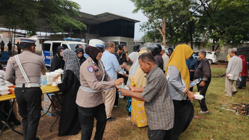 Turut hadir dalam kegiatan ini Kasat Lantas Polres Lhokseumawe, Kanit Kamsel, serta sejumlah personel Satlantas. Paket nasi kotak ini diberikan pengemudi becak motor, petugas kebersihan, dan masyarakat kurang mampu di sekitar lokasi kegiatan.