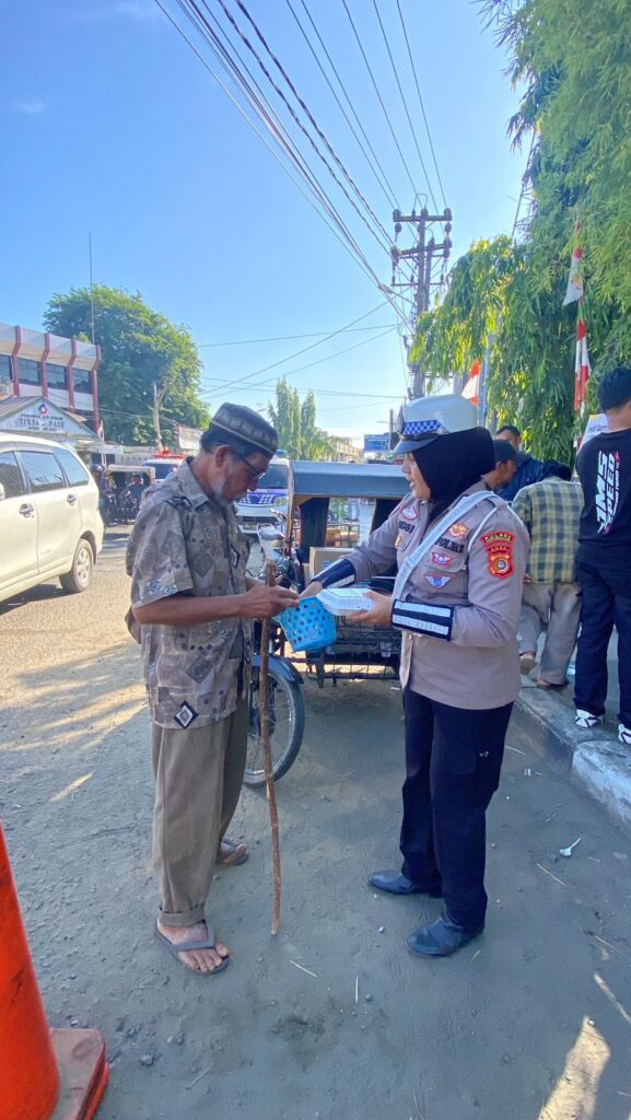 Lhokseumawe – Dalam rangka Operasi Patuh Seulawah 2025, Satuan Lalu Lintas (Satlantas) Polres Lhokseumawe melaksanakan kegiatan Jumat Barokah dengan berbagi kepada masyarakat yang membutuhkan serta mengedukasi pentingnya tertib berlalu lintas di depan Pos Lantas Cunda, Kota Lhokseumawe, Jumat pagi (25/7/2025).