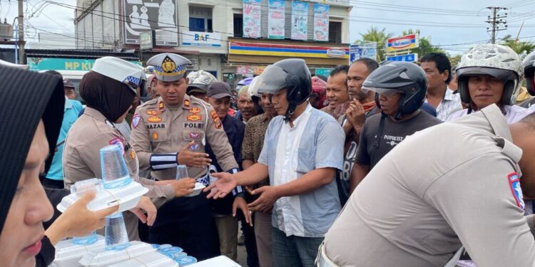Lhokseumawe – Menyemarakkan semangat kepedulian dan kebersamaan di hari yang penuh berkah, Satuan Lalu Lintas (Satlantas) Polres Lhokseumawe melaksanakan kegiatan Jumat Barokah dengan membagikan sejumlah makanan kepada masyarakat yang membutuhkan, Jumat (11/4/2025).