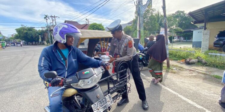 Lhokseumawe – Satuan Lalu Lintas (Satlantas) Polres Lhokseumawe kembali menunjukkan kepeduliannya terhadap masyarakat melalui kegiatan Jumat Barokah, Jumat (23/5/2025) pagi.
