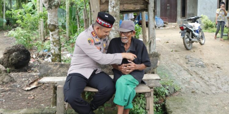 LHOKSEUMAWE – Jumat berkah, Kapolres Lhokseumawe, AKBP Henki Ismanto turun langsung menemui lansia pedesaan di wilayah Kota Lhokseumawe, Jumat (1/9/2023).