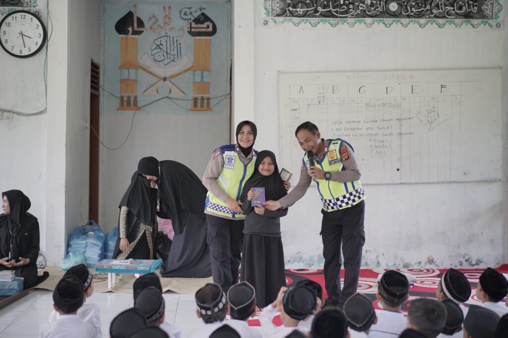 LHOKSEUMAWE – Polantas Lhokseumawe membagikan 120 nasi kotak kepada santri di Balai Pengajian Darul Bahar, Desa Blang Panyang, Kecamatan Muara Satu, Kota Lhokseumawe, Jumat (8/12/2023).