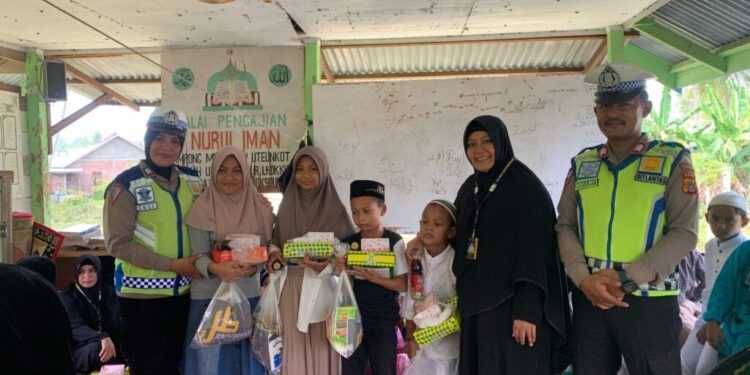 LHOKSEUMAWE – Satuan Lalu Lintas Polres Lhokseumawe menggelar acara Jumat Berkah bersama Komunitas Jumat Barokah di Desa Uteunkot, Kecamatan Muara Dua, Kota Lhokseumawe, Jumat (8/3/2024).