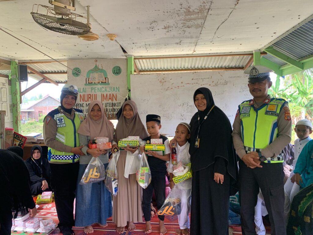 LHOKSEUMAWE – Satuan Lalu Lintas Polres Lhokseumawe menggelar acara Jumat Berkah bersama Komunitas Jumat Barokah di Desa Uteunkot, Kecamatan Muara Dua, Kota Lhokseumawe, Jumat (8/3/2024).