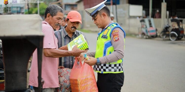 LHOKSEUMAWE 12 Juli 2024 – Satuan Lalu Lintas Polres Lhokseumawe Polda Aceh bersama Komunitas menggelar kegiatan berbagi melalui “Jumat Berkah”, di Balai Pengajian Alfalah Desa Panggoi Kec. Muara Dua Kota Lhokseumawe Jum, at 12 Juli 2024 siang.