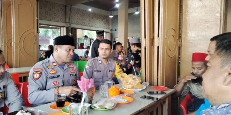 LHOKSEUMAWE – Kapolsek Banda Sakti, Iptu Faisal, SH melaksanakan program Jumat Curhat dengan warga Gampong Pusong Lama, Kecamatan Banda Sakti, Kota Lhokseumawe, Jumat (24/2/2023) pagi.