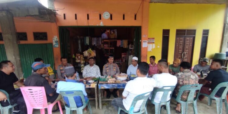 LHOKSEUMAWE – Kapolsek Syamtalira Bayu mendengarkan keluhan masyarakat pada kegiatan Jumat Curhat di salah satu warkop di Gampong Teumpen, Kecamatan Syamtalira Bayu, Aceh Utara wilayah hukum Polres Lhokseumawe, Jumat (27/1/2023).