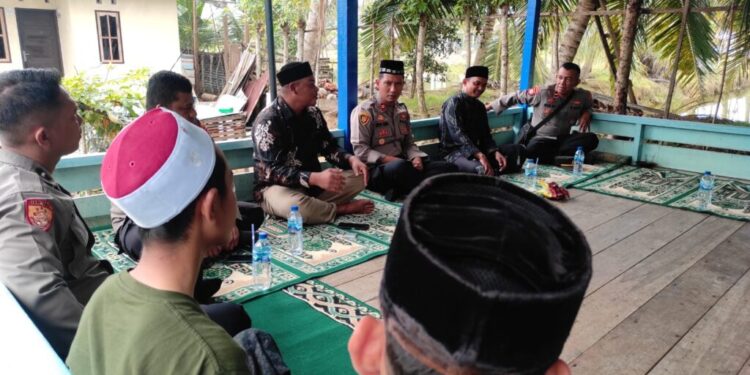 LHOKSEUMAWE – Kapolsek Syamtalira Bayu, Iptu Sirya Iqbal, SH, MH mendengarkan masukan dari tokoh masyarakat dan pimpinan dayah pada kegiatan Jumat Curhat di Dayah Raudatul Syafi’i Gampong Lancok, Syamtalira Bayu, Aceh Utara, wilayah hukum Polres Lhokseumawe, Jumat (3/2/2023).