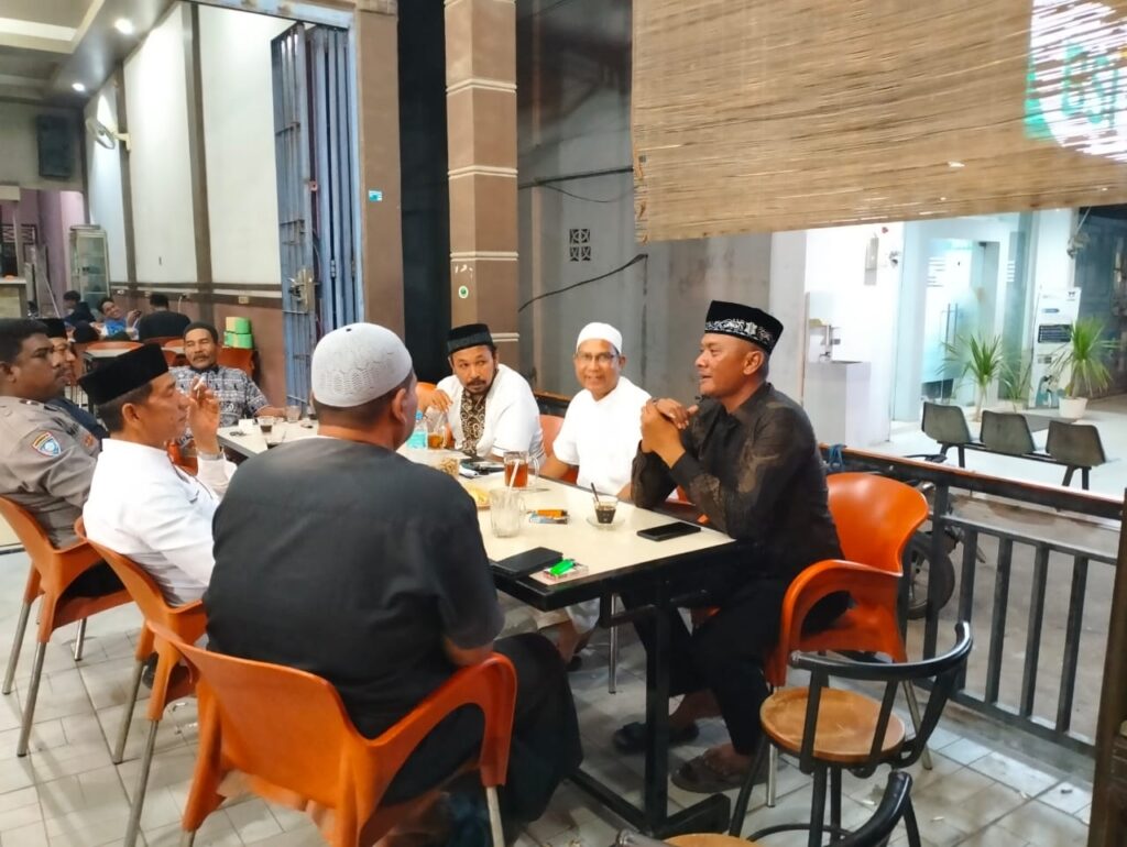 LHOKSEUMAWE – Jumat Tarawih Curhat bersama Kapolsek Muara Satu, Iptu Syahrizal, tokoh agama mengeluhkan masih ada warga yang nongkrong di warkop pada saat pelaksanaan ibadah shalat Isya dan tarawih, Jumat (31/3/2023).