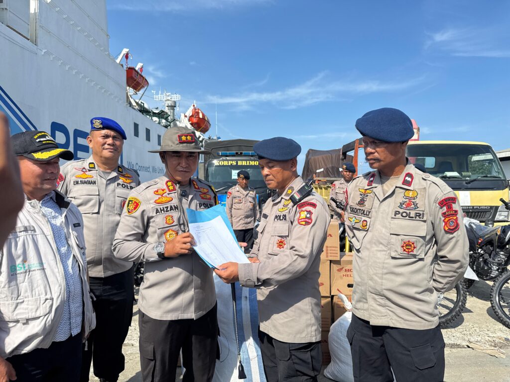 Kapal MV Egon Tiba di Pelabuhan Krueng Geukueh, Kapolres Lhokseumawe Terima Bantuan Logistik Mabes Polri