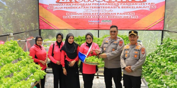 Jantho – Kapolda Aceh Irjen Dr. Achmad Kartiko, didampingi Ketua Bhayangkari Daerah Aceh, Ny. Rani Achmad Kartiko, menghadiri secara virtual launching penguatan program Pekarangan Pangan Lestari (P2L) serentak di Polres Aceh Besar, Senin, 24 Februari 2025.