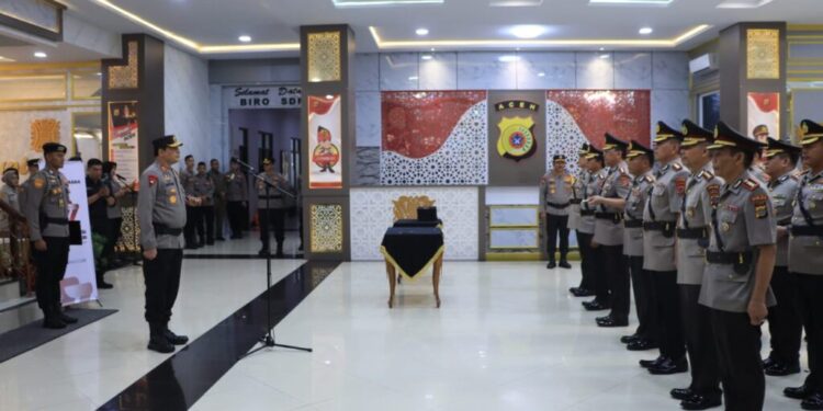 BANDA ACEH – Kapolda Aceh, Irjen Pol Drs Ahmad Haydar, SH, MM melantik sejumlah Pejabat Utama (PJU) dan enam kapolres jajaran Polda Aceh, kegiatan tersebut berlangsung di Loby Mapolda Aceh, Rabu (12/7/2023).