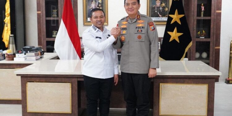 PEKANBARU- Kapolda Riau Mohammad Iqbal menyambut hangan kunjungan Gubernur Riau (Gubri) Abdul Wahid di Mabes Polda Riau, Rabu (12/3/25).