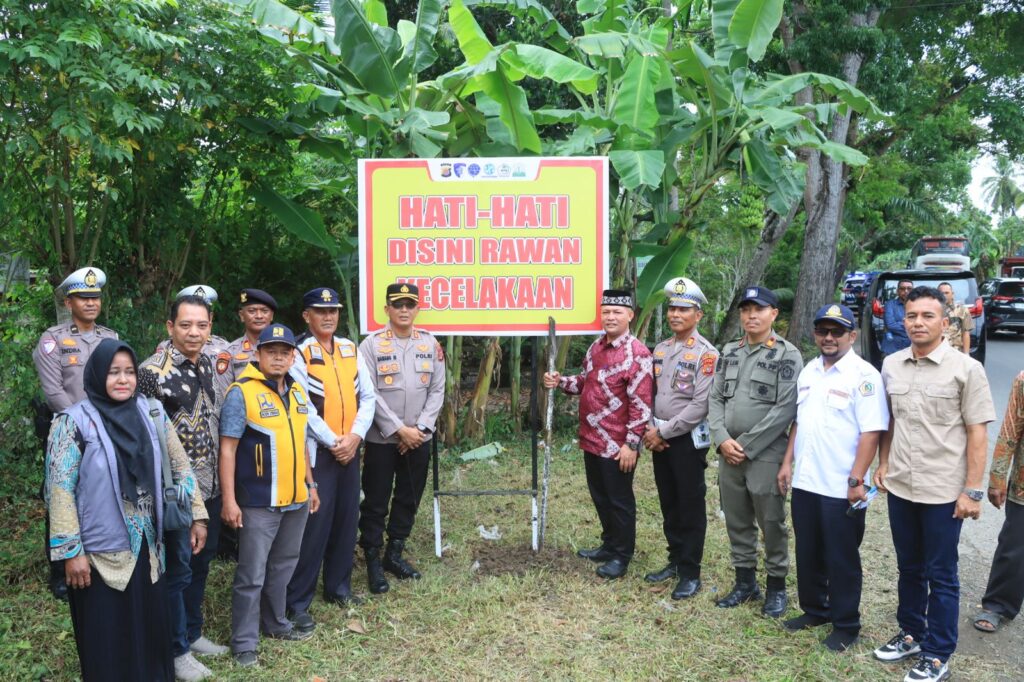 ACEH UTARA – Kapolres Aceh Utara AKBP Nanang Indra Bakti, S.H., S.I.K. bersama Bupati Aceh Utara H. Ismail A. Jalil mengecek lokasi rawan kecelakaan dan memasang spanduk imbauan guna mencegah kecelakaan lalu lintas, Kamis, (24/4/2025) pagi.