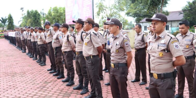 LHOKSUKON – Kapolres Aceh Utara AKBP Deden Heksaputera S, S.I.K. pimpin upacara HUT Satuan Pengamanan (Satpam) yang ke 42. Senin (30/1/2023) Lapangan apel mapolres setempat