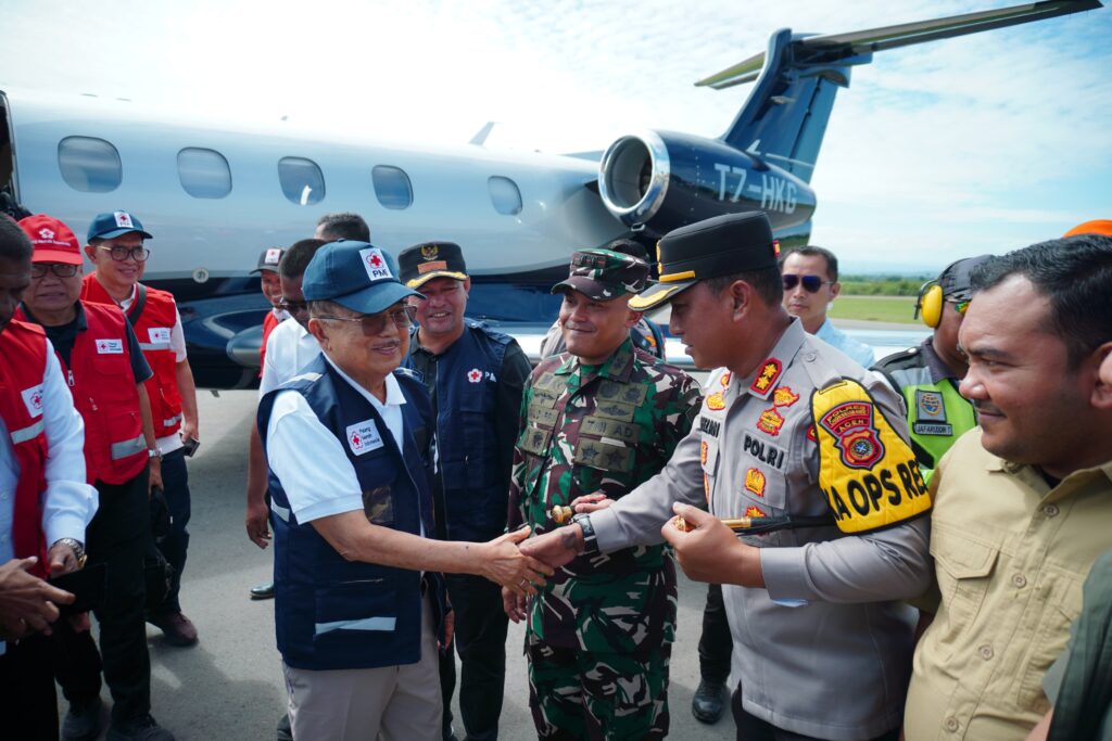 Aceh Utara – Kapolres Lhokseumawe AKBP Dr. Ahzan, S.H., S.I.K., M.S.M., M.H menyambut langsung kedatangan Ketua Umum Palang Merah Indonesia (PMI) Pusat, H. Muhammad Jusuf Kalla, dalam rangka Operasi Kemanusiaan PMI bagi warga terdampak bencana di Desa Paloh Raya dan Desa Keude Bungkaih, Kecamatan Muara Batu, Kabupaten Aceh Utara, Jumat (19/12/2025).