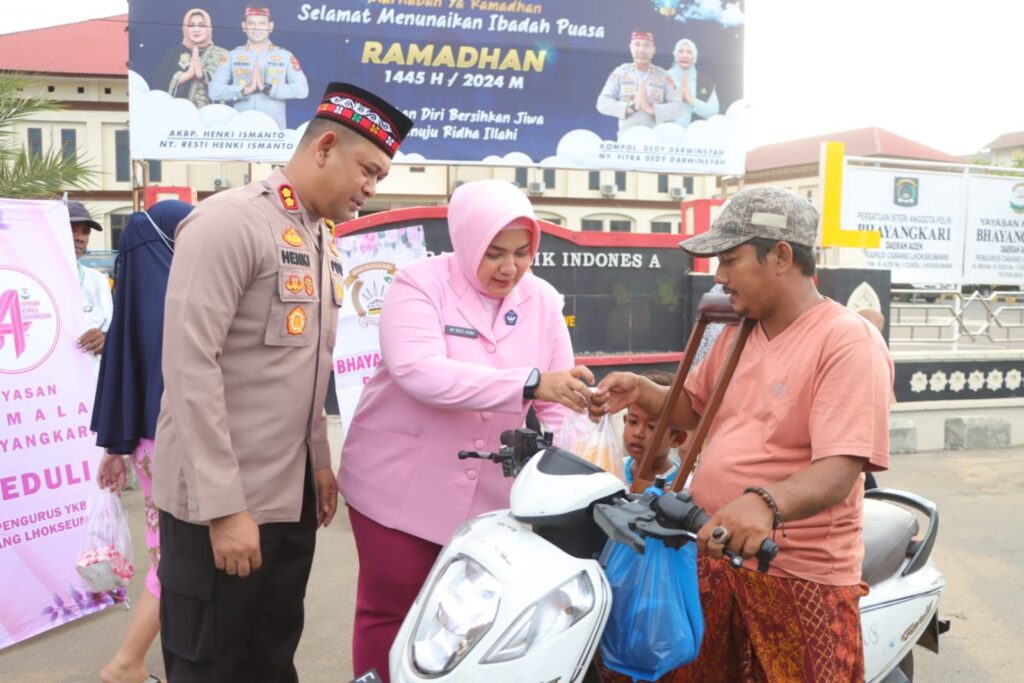 LHOKSEUMAWE – Kapolres Lhokseumawe, AKBP Henki Ismanto S.I.K, turut didampingi oleh Ketua Bhayangkari Cabang Lhokseumawe, Ny. Resti Henki, dalam aksi mulia pembagian 300 paket takjil gratis di depan Mapolres Lhokseumawe, Kamis (21/3/2024) sore