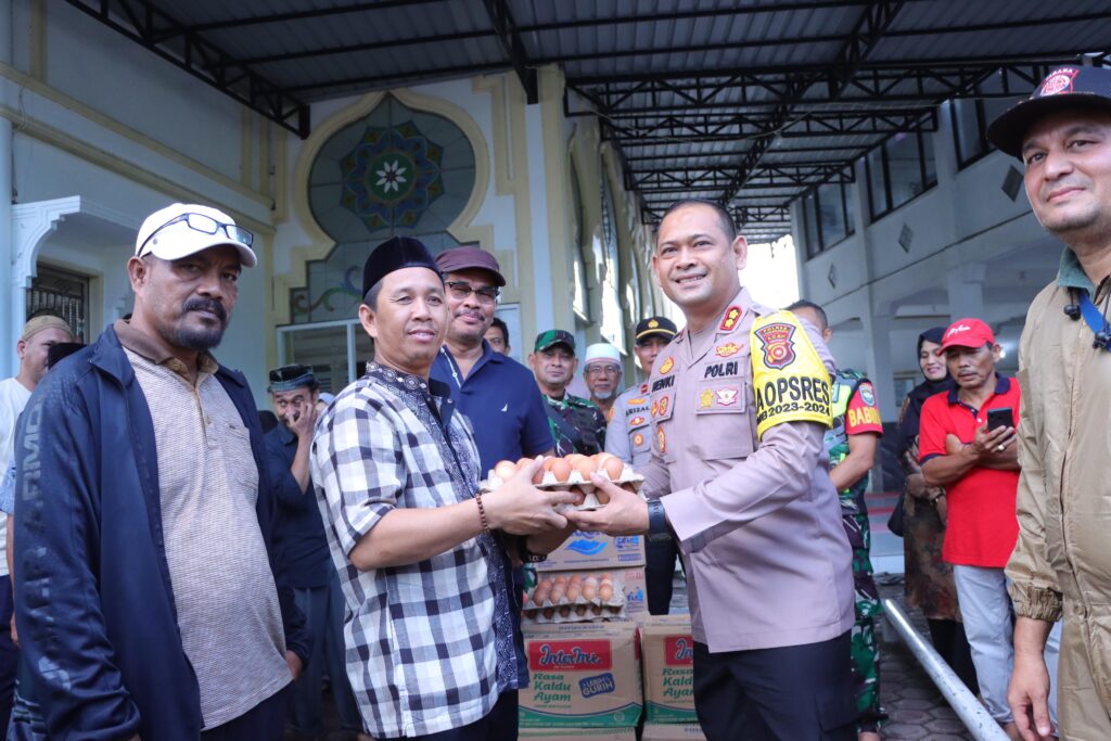 LHOKSEUMAWE – Kapolres Lhokseumawe, AKBP Henki Ismanto bersama unsur Muspida Kota Lhokseumawe menyalurkan bantuan masa panik kepada warga terdampak banjir di wilayah tersebut, Senin (25/12/2023).