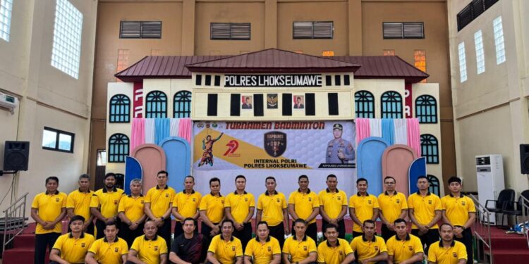 Lhokseumawe — Dalam rangka memeriahkan Hari Bhayangkara ke-79, Polres Lhokseumawe menggelar Turnamen Badminton Internal yang dibuka langsung oleh Kapolres Lhokseumawe AKBP Dr. Ahzan, S.H., S.I.K., M.S.M., M.H di Gedung Serbaguna Polres Lhokseumawe, Jumat (13/6/2025) pagi.