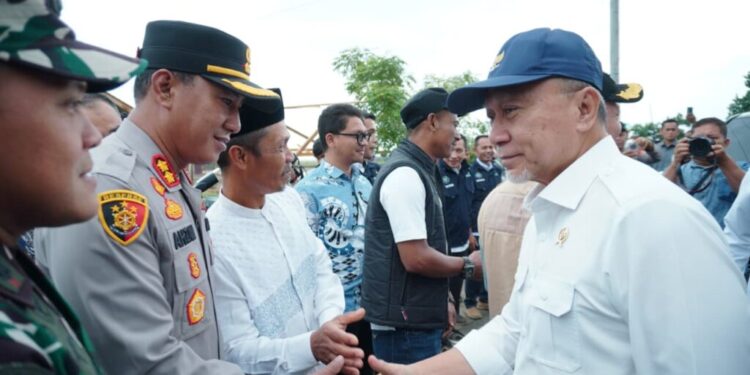 Kunjungan tersebut dihadiri Menko Pangan RI Zulkifli Hasan, Menteri Kelautan dan Perikanan RI Ir. Sakti Wahyu Trenggono, M.M., IPU., bersama dan Menteri Perdagangan RI Budi Santoso, guna meninjau langsung kondisi tambak budidaya ikan air payau milik masyarakat yang terdampak banjir.