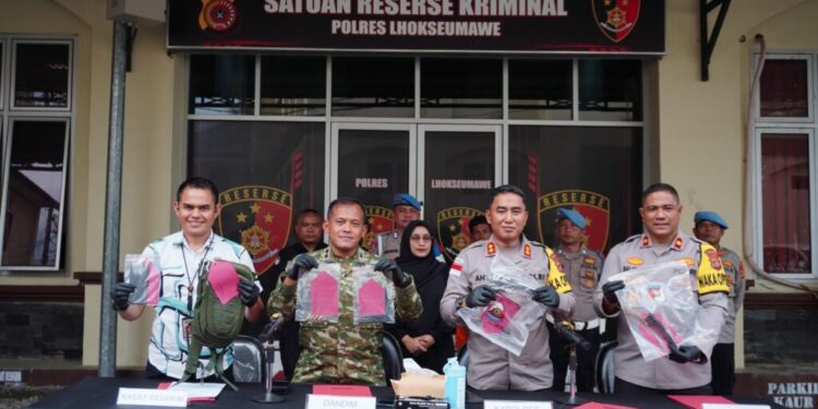 Konferensi pers tersebut turut dihadiri Wakapolres Lhokseumawe Kompol Salmudin, S.E., M.M., AKP Dr. Bustani, S.H., M.H., MSM, Kasi Humas Polres Lhokseumawe Salman Alfarasi, serta sejumlah awak media.