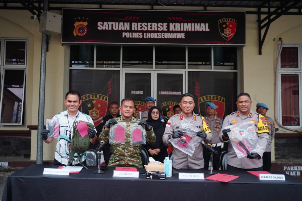 Kapolres Lhokseumawe dan Dandim 0103 Aceh Utara Ungkap Penangkapan Tersangka Kepemilikan Senjata Api Ilegal
