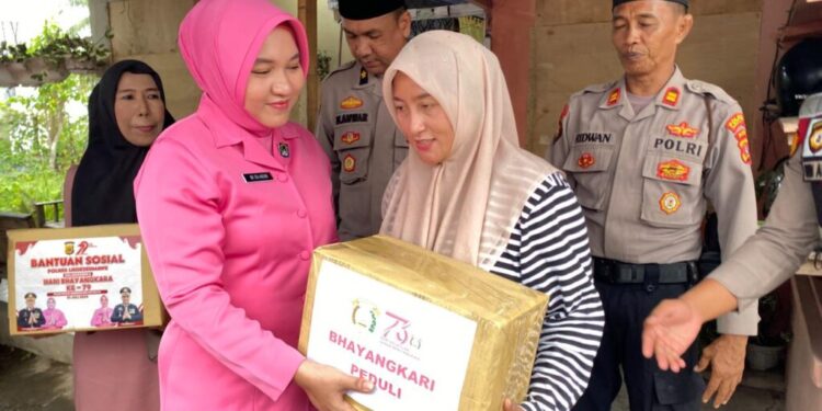 Lhokseumawe – Dalam rangka memperingati Hari Bhayangkara ke-79, Kapolres Lhokseumawe AKBP Dr. Ahzan, S.H., S.I.K., M.S.M., M.H., bersama Ketua Bhayangkari Cabang Lhokseumawe, Ny. Ita Ahzan, melaksanakan kegiatan anjangsana ke rumah istri dari personel Polri yang telah meninggal dunia, di wilayah Kecamatan Banda Sakti dan Muara Dua, Kota Lhokseumawe, Sabtu 22 Juni 2025.