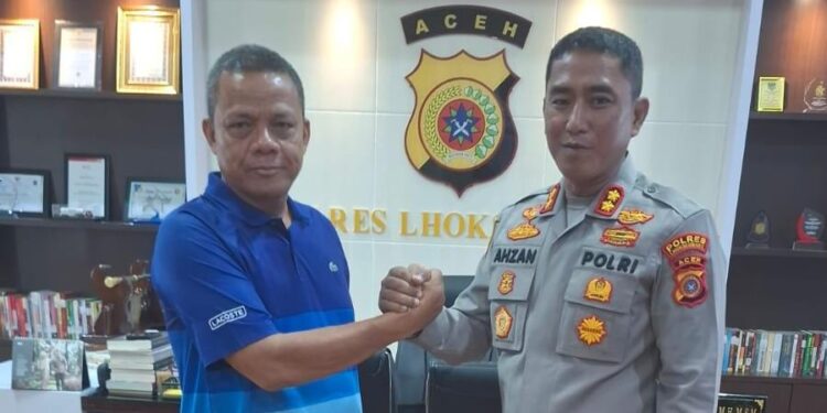 Lhokseumawe – Kapolres Lhokseumawe, AKBP Dr. Ahzan, S.H., S.I.K., M.S.M., M.H., menerima kunjungan Ketua Persatuan Wartawan Indonesia (PWI) Lhokseumawe, Sayuti Ahmad, dalam rangka menjalin sinergi terkait peran media dalam menciptakan situasi yang aman dan kondusif di wilayah Kota Lhokseumawe. Pertemuan tersebut berlangsung di ruang kerja Kapolres, Senin (20/5/2025).