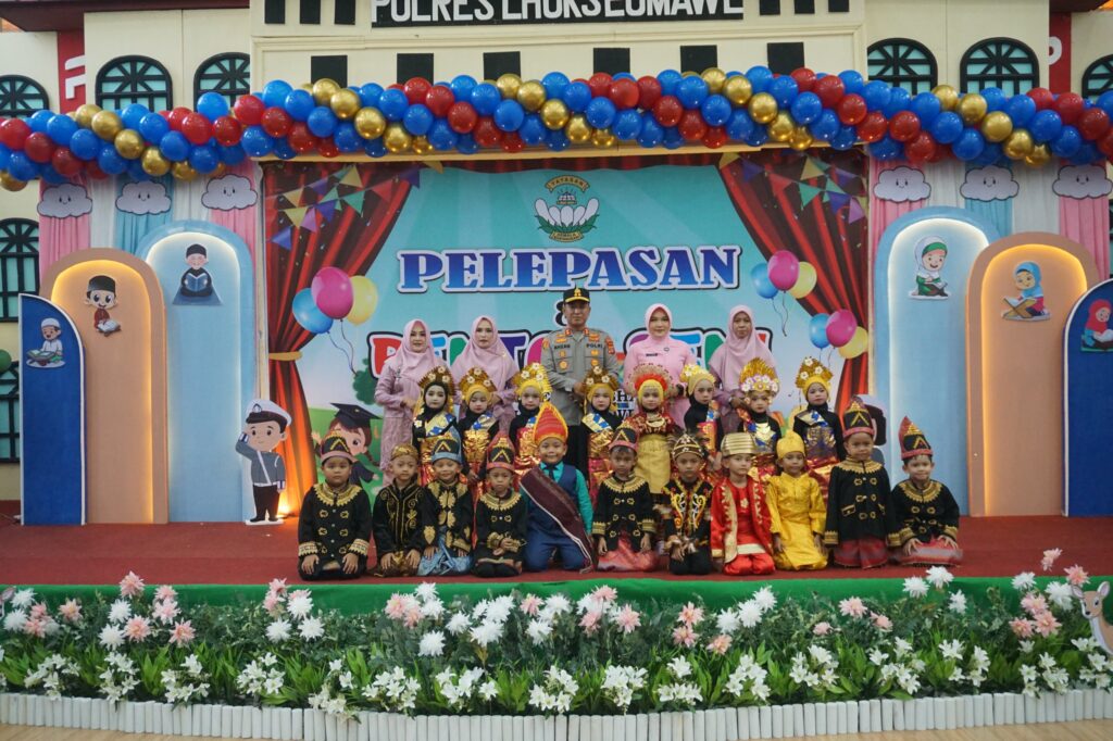 Ketua Yayasan Kemala Bhayangkari Cabang Lhokseumawe Ny. Ita Ahzan menyampaikan bahwa acara pelepasan dan pentas seni ini merupakan agenda rutin yang digelar setiap tahun sebagai bentuk apresiasi terhadap para siswa, guru, serta orang tua yang telah berjuang mendampingi anak-anak menempuh pendidikan sejak usia dini.
