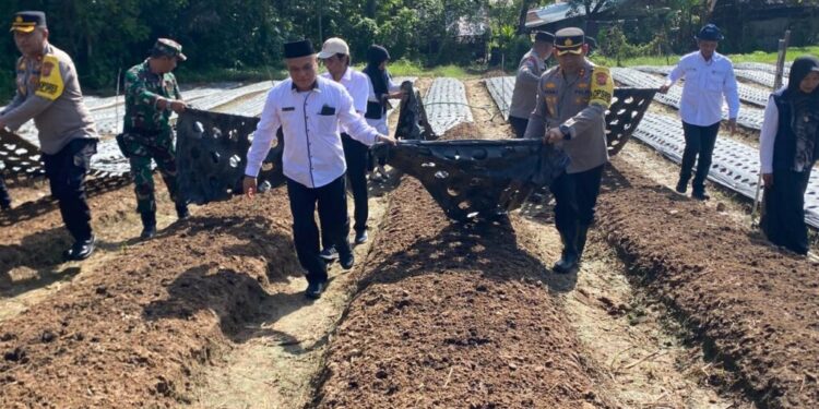 Lhokseumawe – Dalam rangka mendukung Program Ketahanan Pangan nasional, Kapolres Lhokseumawe AKBP Henki Ismanto, S.I.K., bersama jajaran Muspida, melaksanakan penanaman benih bawang merah di Desa Paloh Batee, Kecamatan Muara Dua, Kota Lhokseumawe, pada Selasa (19/11/2024) pagi.