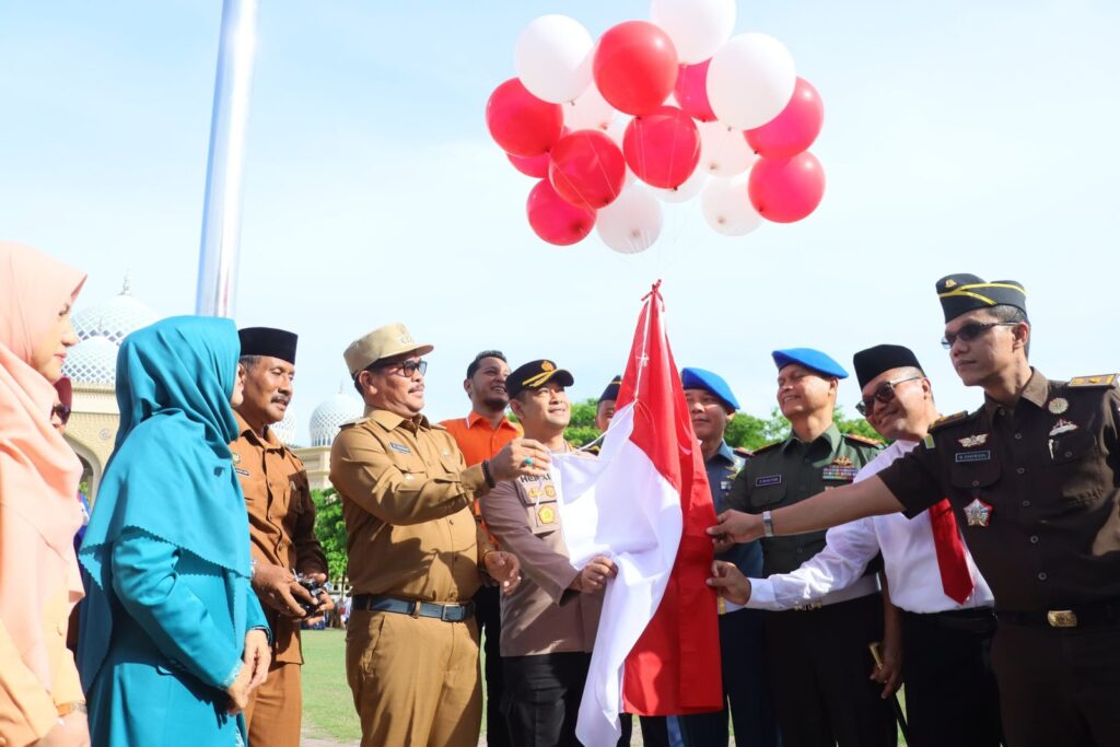 Tampak Lebih dari 1.000 peserta, termasuk Pj. Walikota, Kepala DPRK, dan sejumlah pejabat tinggi, turut serta dalam acara tersebut. Kegiatan dimulai dengan persiapan apel dan peluncuran pembagian 10 juta bendera Merah Putih.