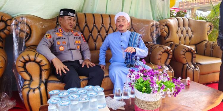 Lhokseumawe – Kapolres Lhokseumawe AKBP Dr. Ahzan, S.H., S.I.K., M.S.M., M.H., menghadiri acara peringatan Maulid Nabi Muhammad SAW sekaligus Haul Dayah ke-5 yang digelar di Yayasan Pendidikan Islam Dayah Riyadhatul Qulub, Gampong Baloy, Kecamatan Blang Mangat, Kota Lhokseumawe, Selasa siang (4/11/2025).
