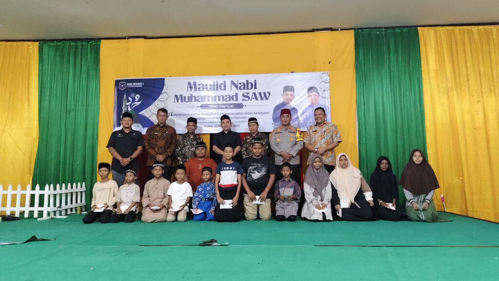 LHOKSEUMAWE – Kapolres Lhokseumawe AKBP Dr. Ahzan, S.H., S.I.K., MSM., M.H. menghadiri peringatan Maulid Nabi Muhammad SAW 1447 H yang diselenggarakan di SMKN 1 Lhokseumawe, Kamis (20/11/2025). Kehadiran Kapolres dalam kegiatan keagamaan ini menjadi bentuk dukungan Polri terhadap pembinaan moral serta penguatan karakter generasi muda di Kota Lhokseumawe.