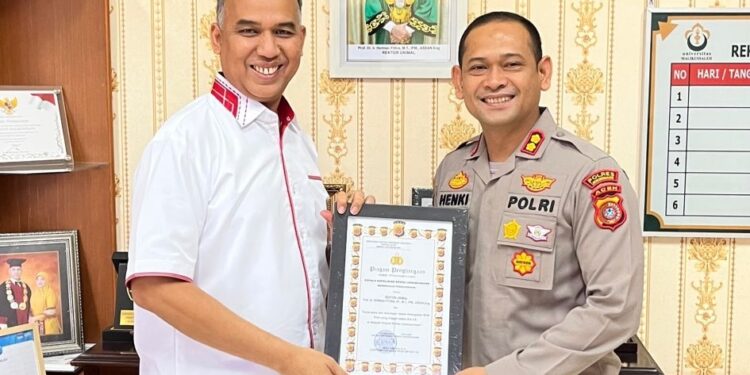 LHOKSEUMAWE – Kapolres Lhokseumawe, AKBP Henki Ismanto melakukan kunjungan silaturahmi dengan Rektor Universitas Malikussaleh (Unimal),