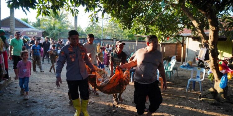 Korban bernama Sabri (35) ditemukan dalam keadaan meninggal dunia, diduga terseret arus banjir dan terjebak di area kebun yang tertutup lumpur tebal. Begitu menerima laporan, Kapolres bersama personel langsung bergerak menuju titik lokasi meski harus menembus jalan berlumpur dan licin.