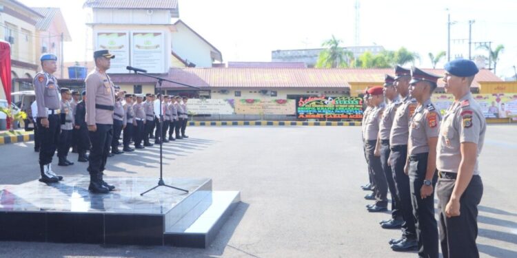 Kapolres Lhokseumawe Pimpin Upacara Kenaikan Pangkat 24 Personil.