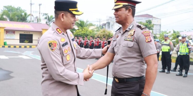 Kapolres Lhokseumawe AKBP Henki Ismanto, S.I.K dalam amanatnya menyampaikan ucapan selamat dan rasa bahagia kepada Kompol Fazli, S.H yang pada hari ini dilantik dinaikkan pangkatnya setingkat lebih tinggi.