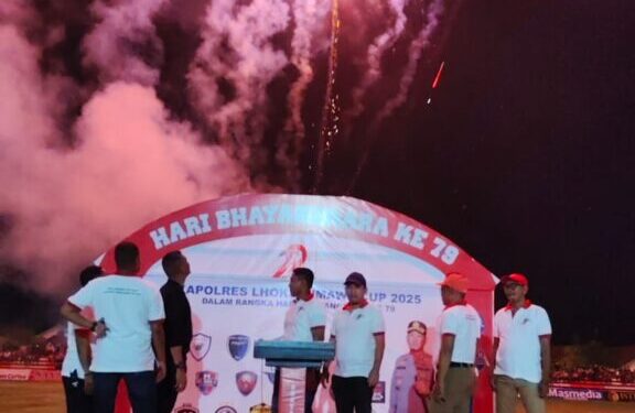 Aceh Utara – Kapolres Lhokseumawe resmi membuka open Turnamen sepak bola bergengsi Kapolres Cup tahun 2025 yang berlangsung di Stadion Krueng Mane, Kecamatan Muara Batu, Kabupaten Aceh Utara, Selasa malam (1/7/2025).