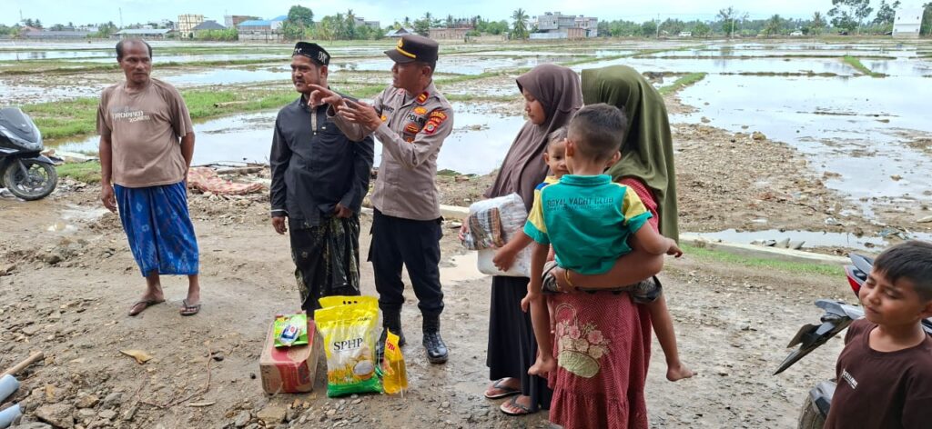 “Kami hadir untuk menyampaikan amanah dari Kapolres Lhokseumawe sebagai wujud kepedulian Polri kepada masyarakat yang sedang tertimpa musibah. Diharapkan bantuan ini dapat sedikit meringankan beban warga dalam memenuhi kebutuhan sehari-hari pascabencana banjir,” ujar Iptu Gunanto.
