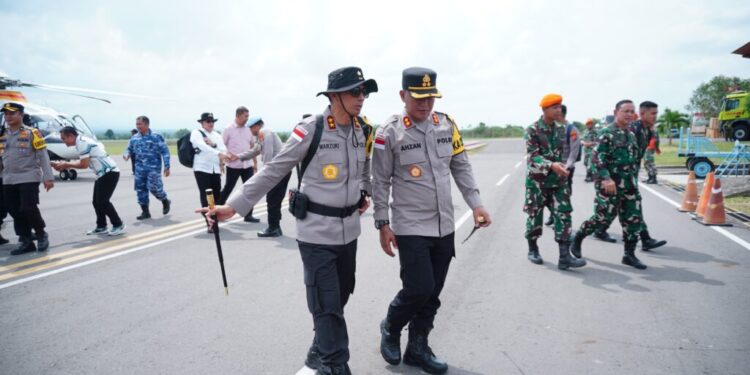 Lhokseumawe — Kapolres Lhokseumawe AKBP Dr. Ahzan, S.H., S.I.K., M.S.M., M.H., menyambut langsung kedatangan Kapolda Aceh di Bandara Malikussaleh, Kabupaten Aceh Utara, Jumat siang (26/12/2025).