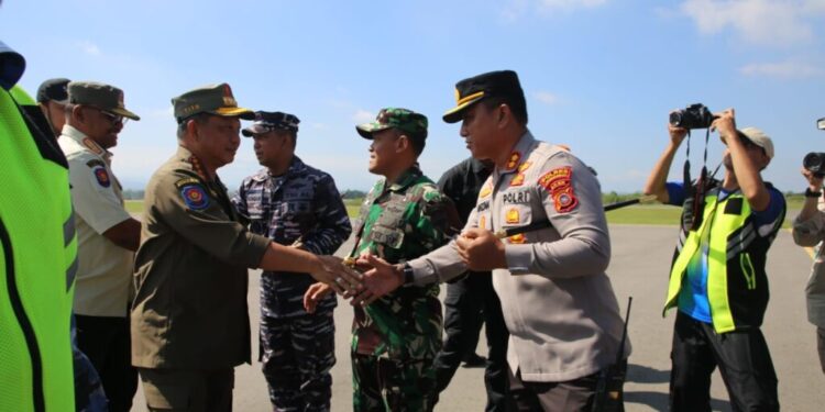 LHOKSEUMAWE – Kapolres Lhokseumawe AKBP Dr. Ahzan., S.H., S.I.K., M.S.M., M.H menyambut langsung kedatangan Menteri Dalam Negeri Republik Indonesia, Jenderal Polisi (Purn.) Prof. Dr. H. Muhammad Tito Karnavian, M.A., Ph.D., di Bandara Malikussaleh, Aceh Utara, Minggu (30/11/2025).
