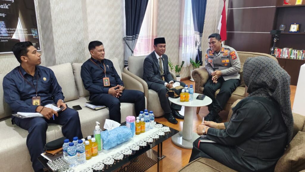 Lhokseumawe – Kapolres Lhokseumawe, AKBP Dr. Ahzan, S.H., S.I.K., M.S.M., M.H., menyambut kunjungan silaturrahmi Ketua Mahkamah Syar’iyah Lhokseumawe, Yedi Suparman, S.H.I., M.H., di Mapolres Lhokseumawe, Selasa pagi (23/9/2025).
