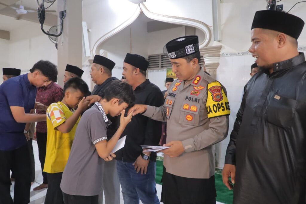 Lhokseumawe – Kapolres Lhokseumawe AKBP Dr. Ahzan, S.H., S.I.K., M.H., M.S.M., menunjukkan kepedulian terhadap masyarakat dengan memberikan santunan kepada anak yatim di Gampong Pusong Lama, Kecamatan Banda Sakti, Kota Lhokseumawe, Senin (16/3/2026) sore.