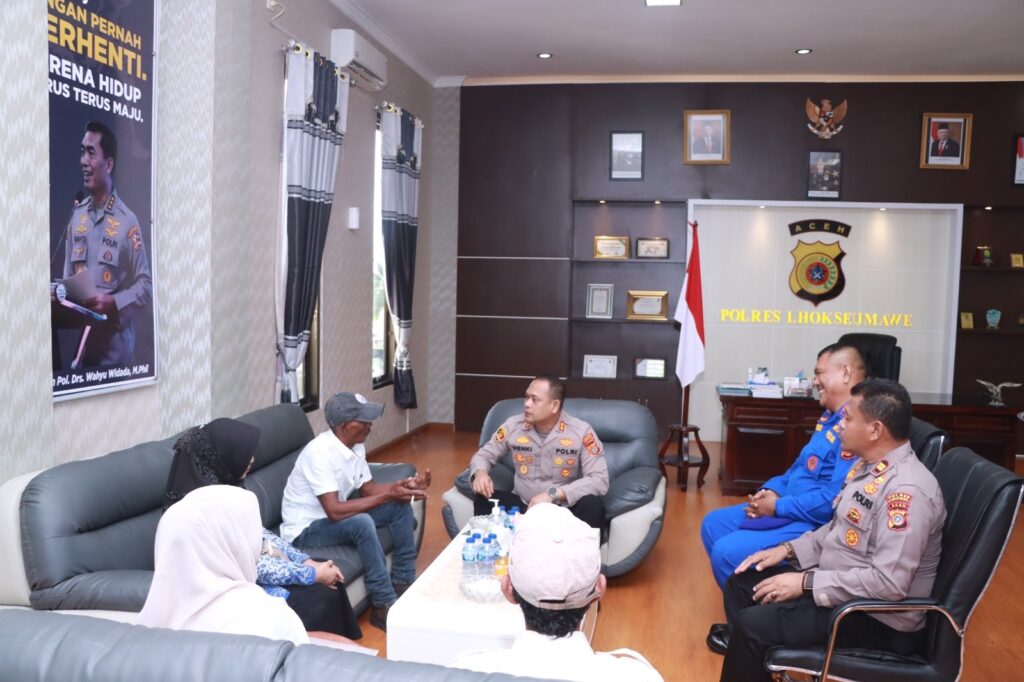 LHOKSEUMAWE – Kapolres Lhokseumawe, AKBP Henki Ismanto, SIK menerima kunjungan Persekutuan Nelayan Tradisional Aceh (PNTA) wilayah Lhokseumawe, pertemuan tersebut berlangsung di ruang kerja Kapolres Lhokseumawe, Rabu (17/5/2023).