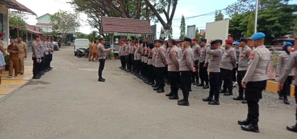 LHOKSEUMAWE – Kapolsek Banda Sakti, Ipda Arizal memimpin apel pengamanan Tempat Pemungutan Suara (TPS) Pemilu 2024, apel tersebut berlangsung di halaman Mapolsek Banda Sakti, Polres Lhokseumawe, Senin (12/2/2024).