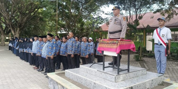 Aceh Utara – Dalam rangka memperingati Hari Ulang Tahun (HUT) ke-80 Republik Indonesia, Kapolsek Dewantara Iptu Muhammad Suherno bertindak sebagai inspektur upacara bendera di SMA Negeri 1 Dewantara, Desa Paloh Lada, Kecamatan Dewantara, Kabupaten Aceh Utara, Minggu (17/8/2025).
