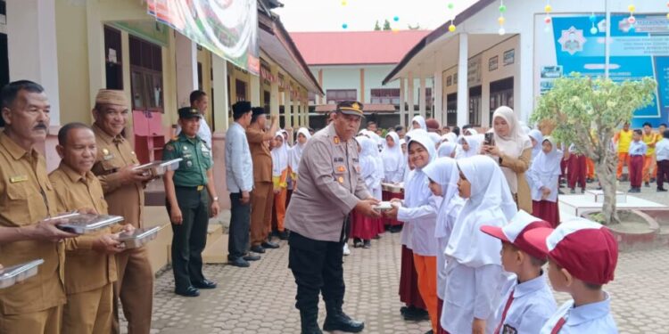 Aceh Utara – Kapolsek Muara Batu AKP Ali Akbar bersama personel Polsek menghadiri launching program Makan Bergizi Gratis (MBG) yang digelar Badan Gizi Nasional (BGN) di Kecamatan Muara Batu, Kabupaten Aceh Utara, Senin (25/8/2025) pagi.