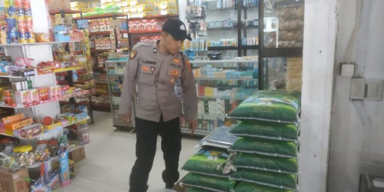LHOKSEUMAWE – Personel Polsek Muara Batu rutin melakukan pengecekan persediaan sembako ke sejumlah pedagang di Keude Krueng Mane, Kecamatan Muara Batu, Aceh Utara, wilayah hukum Polres Lhokseumawe, Rabu (15/2/2023).