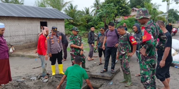 ACEH UTARA – Tingginya curah hujan yang mengguyur wilayah Kecamatan Muara Batu dalam beberapa hari terakhir mengakibatkan genangan air di halaman rumah warga di sejumlah desa. Menyikapi kondisi tersebut, Kapolsek Muara Batu Ipda Syukrullah, S.E. bersama unsur Muspika turun langsung melakukan peninjauan ke lokasi terdampak, Minggu (23/11/2025) sekira pukul 12.05 WIB.