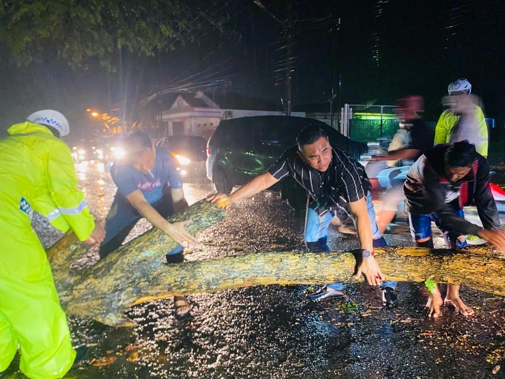 “Kami sempat meminta bantuan kepada pihak BPBD, namun karena kondisi tidak memungkinkan dan terjadi kemacetan panjang. Kami mengambil inisiatif bersama masyarakat bergotong royong membersihkan pohon yang tumbang di atas badan jalan agar lalu lintas kembali lancar,” pungkasnya.